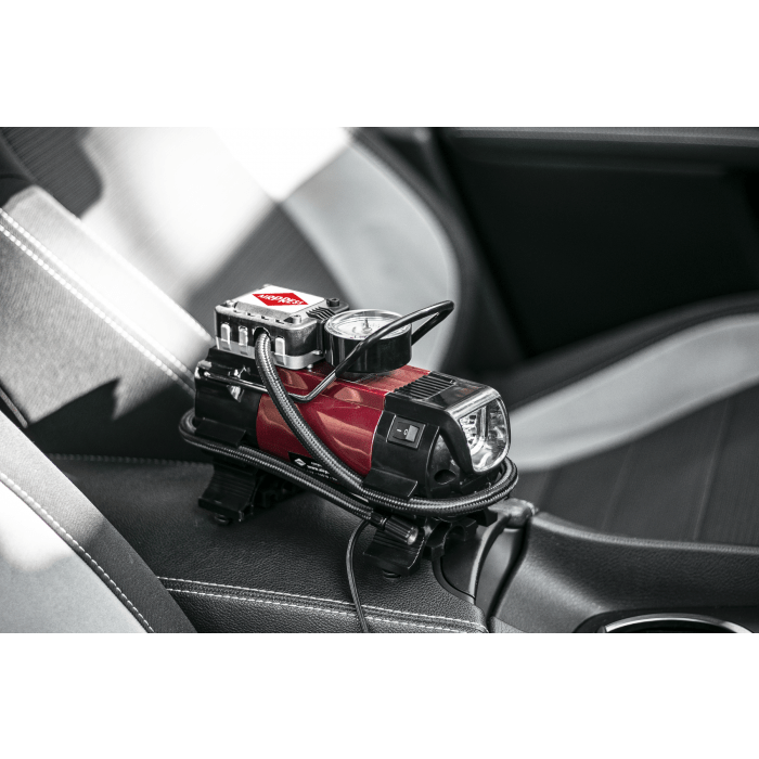 12V maitinimas puikiai tiks kelionėse, kur visada turite po ranka suspaustą orą! Dabar jums niekada nereikės jaudintis dėl nepakankamai pripūstų padangų automobilyje ar dviračiu.