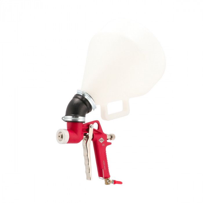 Pusiau atviras 5 litrų talpos rezervuaras leidžia greitai ir patogiai papildyti medžiagą, kas didina darbo efektyvumą. Rinkinyje yra trys antgaliai, kurių skersmenys 4, 6 ir 8 mm, tai leidžia dengti įvairias struktūras - nuo smulkių iki šiurkščių dangų. Guminis jungtis tarp pistojeto ir rezervuaro užtikrina lankstumą ir leidžia pasiekti sunkiai prieinamas vietas, tokias kaip kampai ar įdubos.